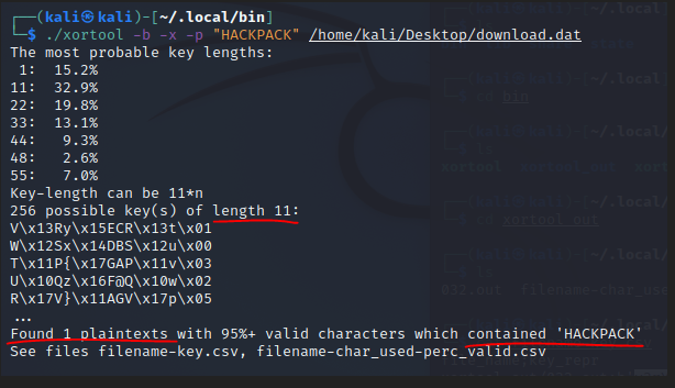 ./xortool -b -x -p "HACKPACK" /암호화된파일
