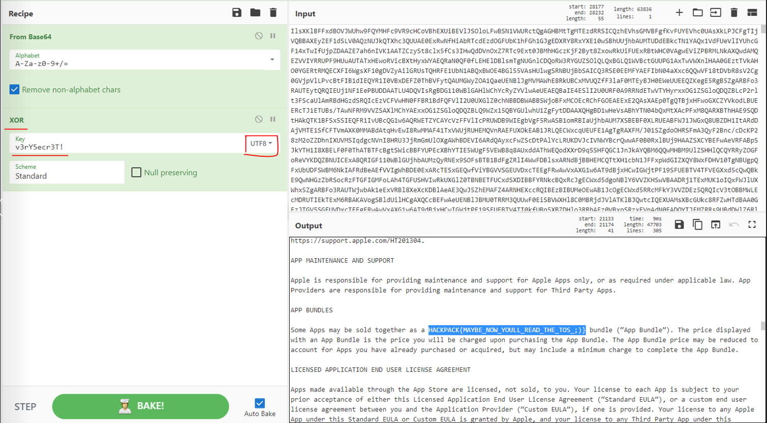 Cyberchef에 가서 key값에 v3rY5ecr3T! 을 넣어주고, 포맷은 UTF8로 지정해준다.