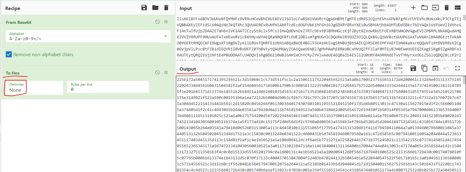 Cyberchef에서 base64 인코딩 된 값을 먼저 디코딩 해주고,