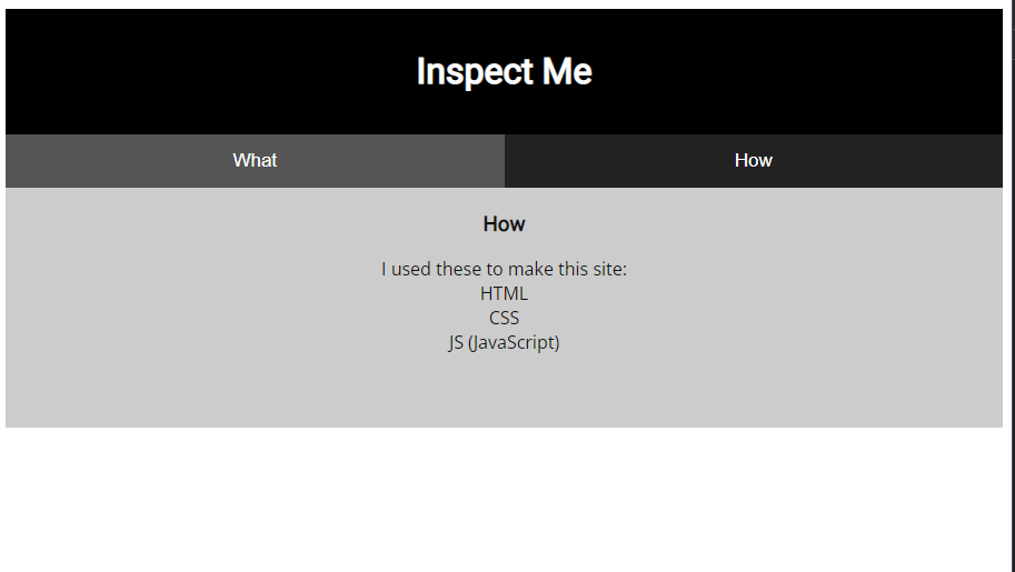How 버튼을 누르면 자기가 HTML, CSS, JS를 이용해서 웹사이트를 만들었다고 한다.