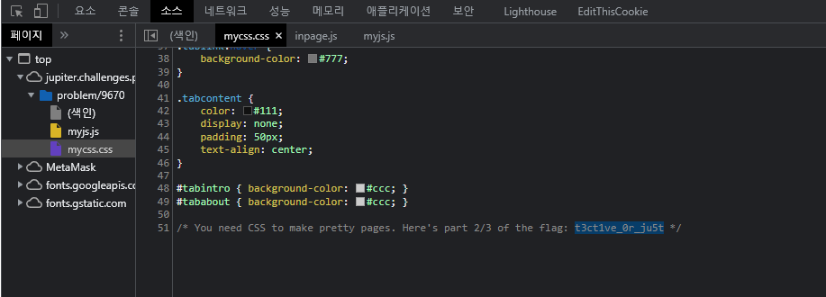 마지막으로 myjs.js 파일을 들어가보면 역시나 맨 아래쪽 주석에 플래그가 있다.