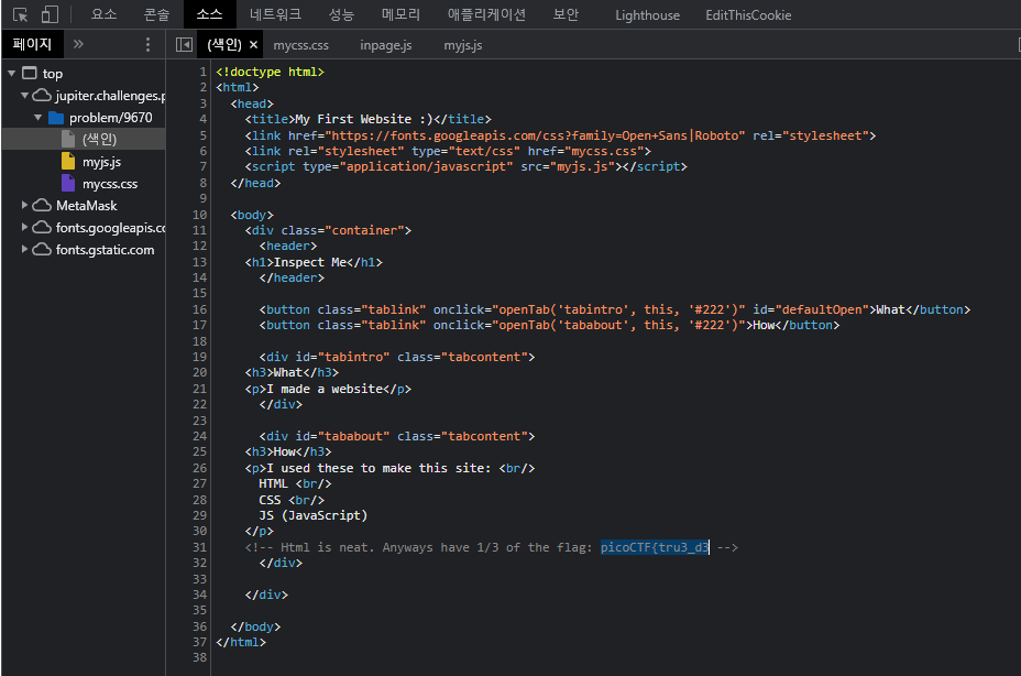 아까 How 버튼을 눌렀을때 나왔던 HTML, CSS, JS 순서로 들어가 보았다.