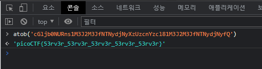 개발자도구의 콘솔 탭에서 atob() 함수 안에 인코딩된 base64 값을 넣어주면