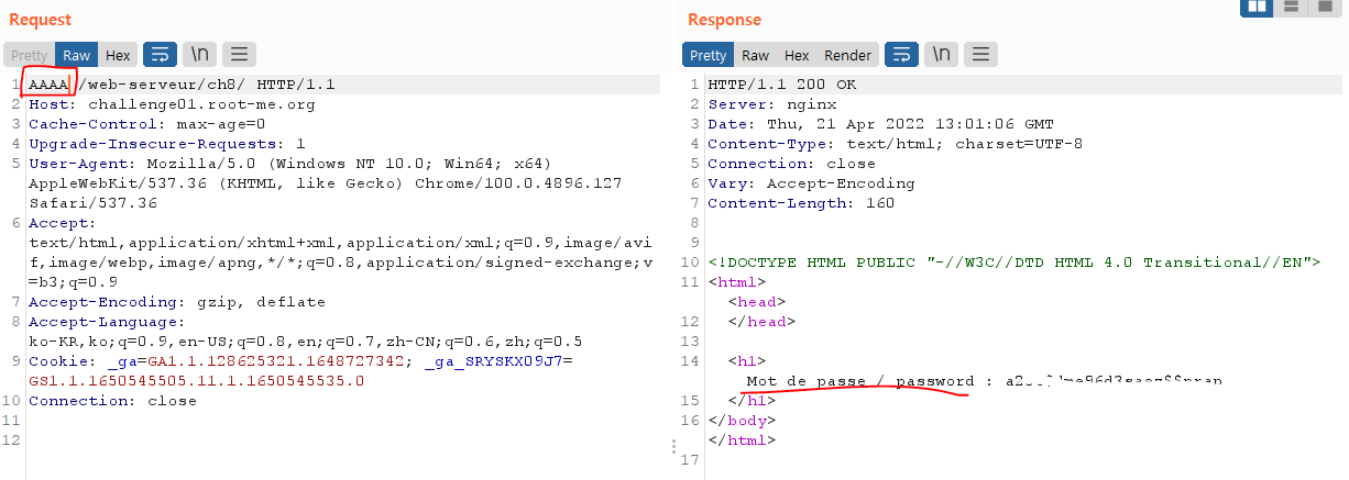 Burp Suite 도구를 이용해서 문제 페이지에 접속할때 패킷을 잡아본다.
