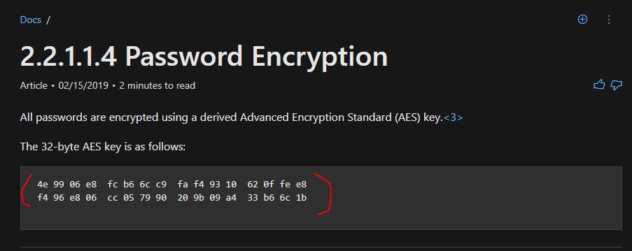 PowerShell 스크립트에 있는 AesKey는 마이크로소프트 Docs에서도 찾을 수 있다.