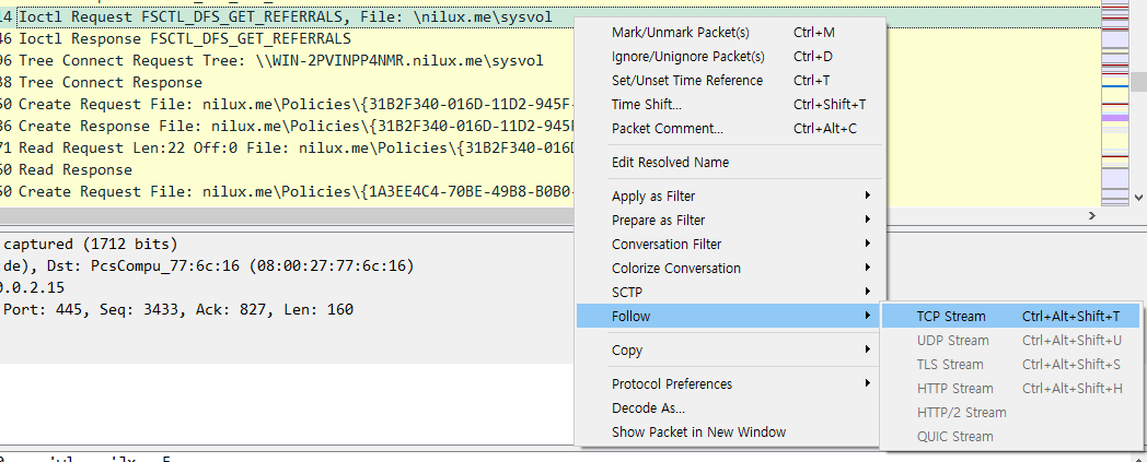조금 더 자세히 보기 위해 해당 패킷에서