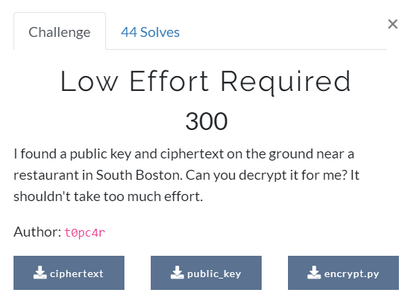 [UMDCTF] Low Effort Required - 암호학 / RSA