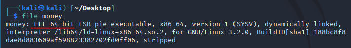 칼리 리눅스에서 file 명령어를 통해 해당 바이너리의 정보를 확인해보면