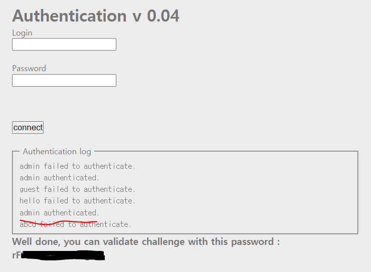 connect 버튼을 누르면 로그인이 성공한것처럼 로그가 조작되면서