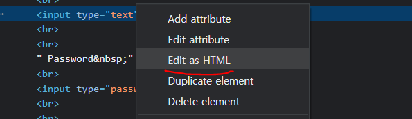 이 부분에 우클릭을 한 뒤에 Edit as HTML을 누르면 수정이 가능하다.