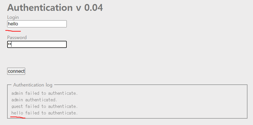 시험삼아 hello / hi 를 입력해서 로그인을 시도해봤는데
