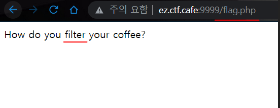 맨 처음 그냥 /flag.php 로 접근했을 때처럼 How do you filter your coffee?라는 글자만 보이게 된다.