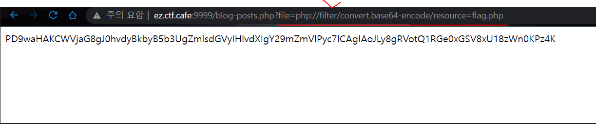 이번에 URL은 ez.ctf.cafe:9999/blog-posts.php?file=blog2.html
