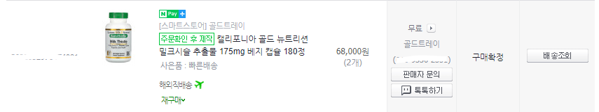 캘리포니아 골드 뉴트리션 밀크시슬인데 네이버에서 주문할 수 있고
