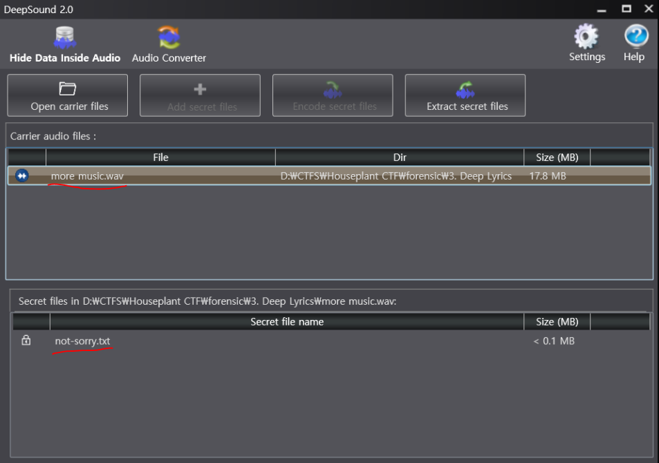 [HouseplantCTF] Deep Lyrics - 포렌식 / 스테가노그래피 / DeepSound