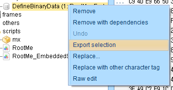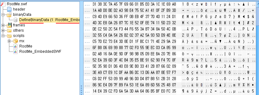 그다음 EmbeddedSWF 에는 RootMe_EmbeddedSWF 라는것을 저장하고 있다.