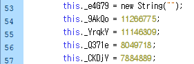 _Q371e 변수에 8049718, _CKDjY 변수에 7884889 를 저장하고 있다.
