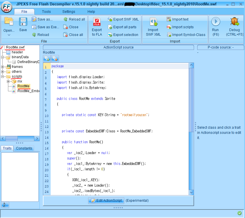 이번에는 FFDEC(JPEXS Free Flash Decompiler) 라는 도구를 사용해 본다.