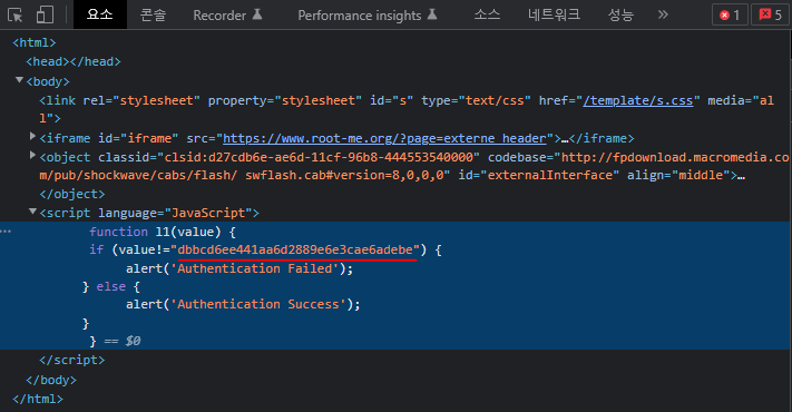 <script> 태그 안의 내용을 보면, value 값이 dbbcd6ee441aa6d2889e6e3cae6adebe 와 다르면