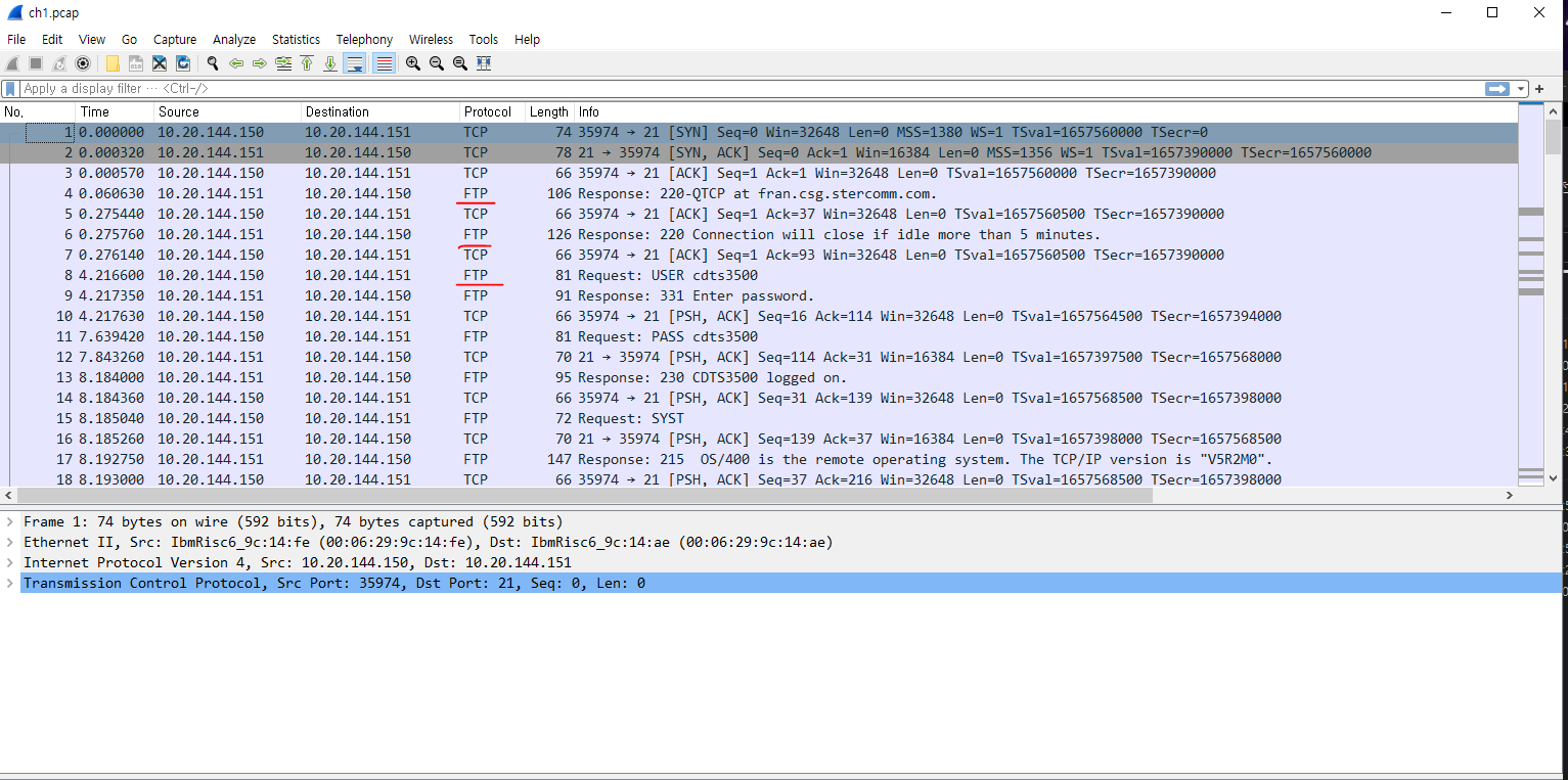 문제는 FTP 프로토콜을 이용한 사용자의 비밀번호를 알아내는것이 목표이다.