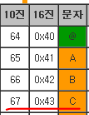 ASCII 코드표에서 10진수 67은 영어 대문자 C를 의미한다.