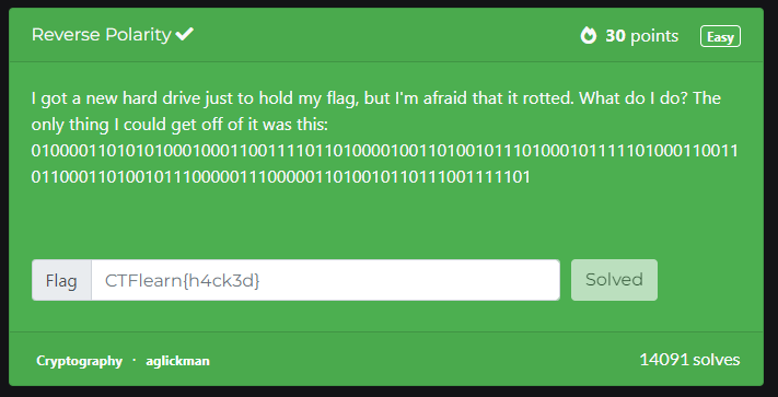 [CTFlearn] Reverse Polarity - 암호학 / Binary