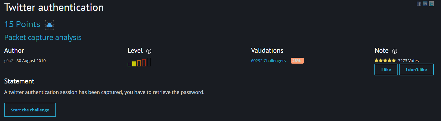 문제의 목표는 캡쳐된 트위터 인증 세션에서 유저의 비밀번호를 찾아내는 것이다.