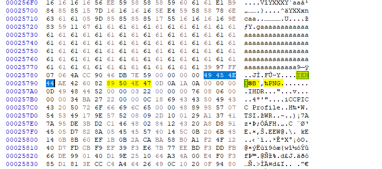 Ctrl + F 를 눌러 찾기 기능을 이용해 IEND 를 검색해본다.