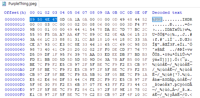 파일이 89 50 4E 47 으로 시작하는것을 알 수 있다.