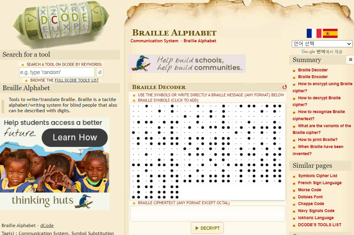 점자는 온라인에서 디코딩해주는 사이트가 아주 많이 있다.