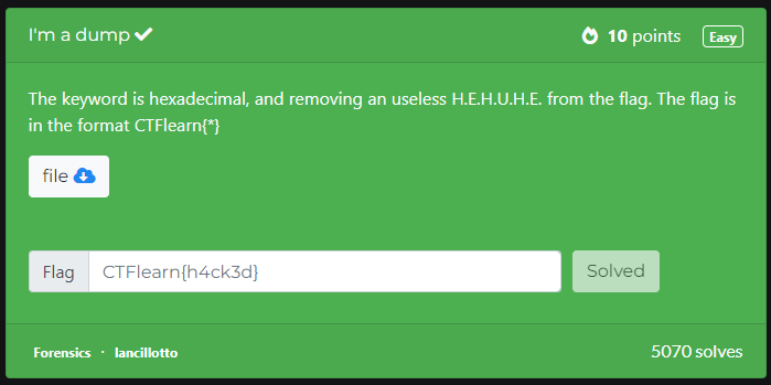 [CTFlearn] I'm a dump - 포렌식 / IDA / HxD