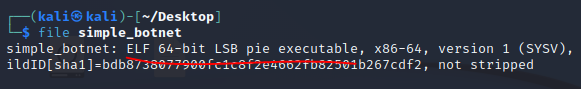 simple_botnet 이라는 이름의 바이너리 파일이 하나 주어진다.