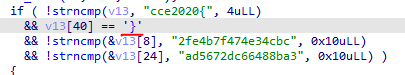 && !strncmp(&v13[8], "2fe4b7f474e34cbc", 0x10uLL)
