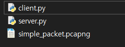 client.py / server.py / simple_packet.pcapng 파일이다.