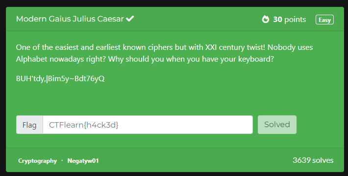 [CTFlearn] Modern Gaius Julius Caesar - 암호학 / 카이사르암호