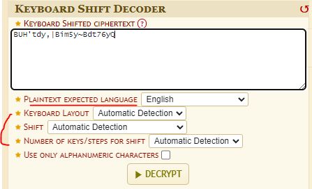 decode.fr(https://www.dcode.fr/keyboard-shift-cipher) 에가면