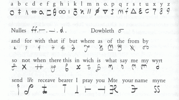 각 기호들과 주요 단어, 조사들을 저렇게 특정한 기호로 1:1 치환해서 만든 암호인가 보다.
