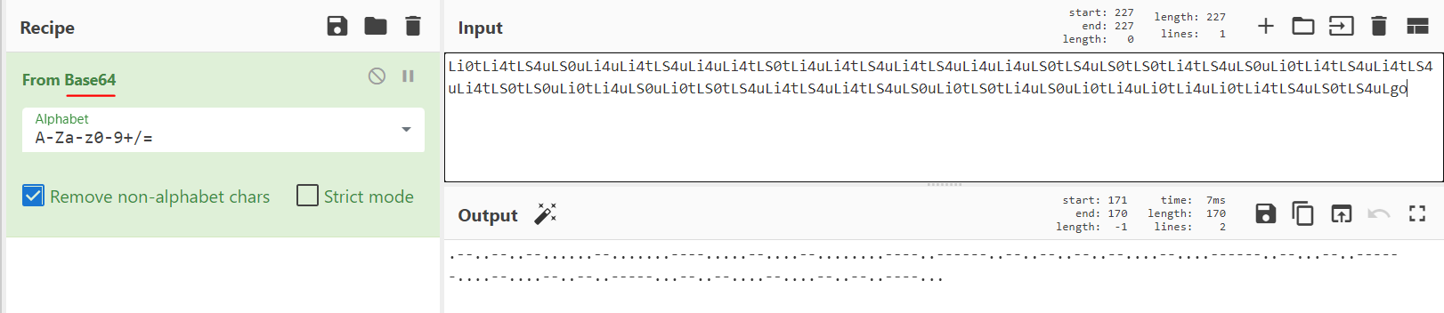 Base64로 디코딩을 해보니 .과 - 로 이루어진 문자열이 나왔다.