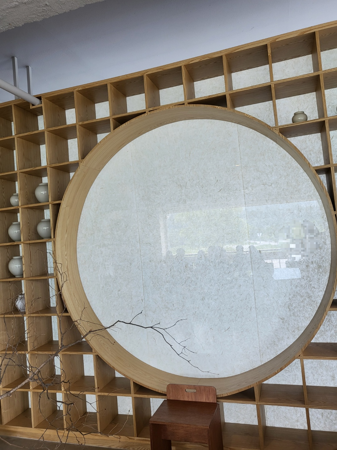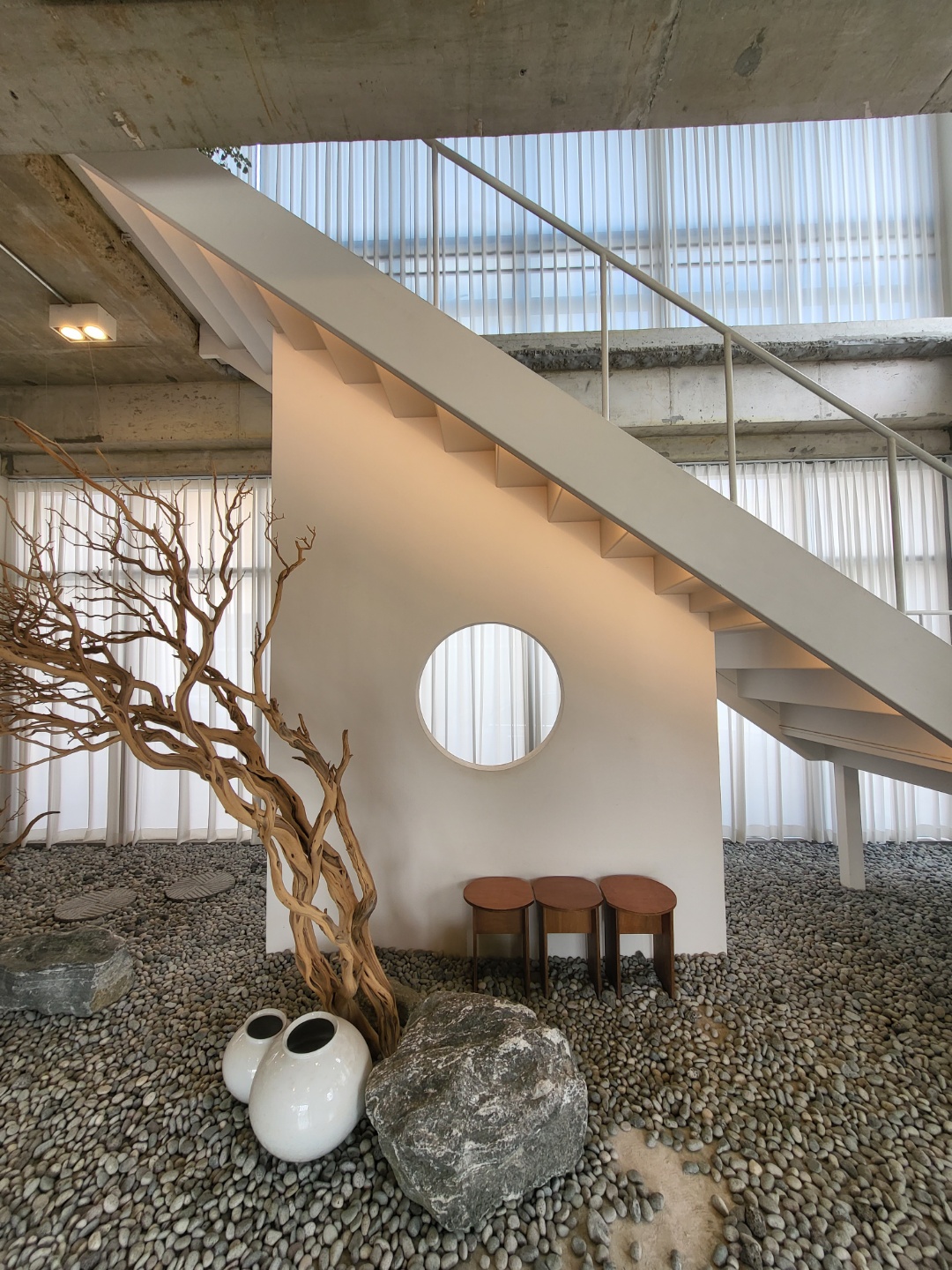 2층으로 올라가는 계단 아래 이렇게 의자와 동그랗게 구멍이 뚫린 벽이 있다.
