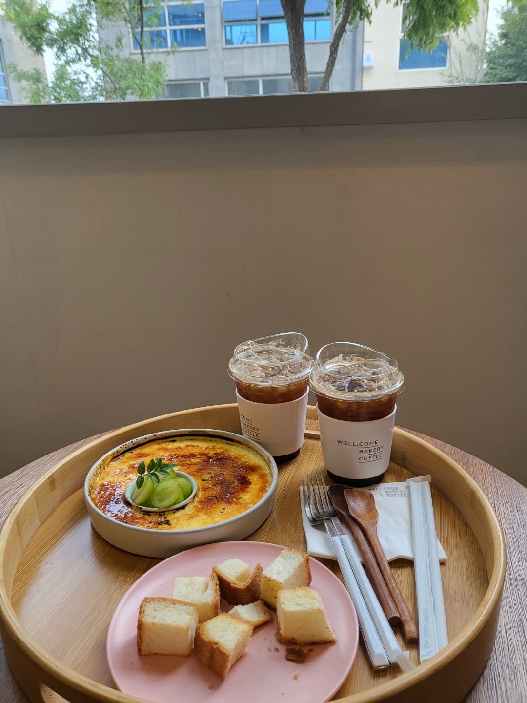 니는 아메리카노 2잔과 웰콤커피의 시그니처 중 하나라고 할수 있는 크림브륄레를 시켰다.