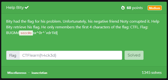 출력된 플래그를 자세히 보면 CTFLearn 이 아니라 CTFLern 이라고 되어있는걸 볼 수 있다.