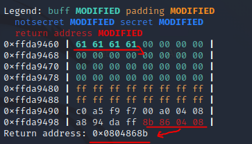 스택이 온통 0x61 로 가득 차게 되고,