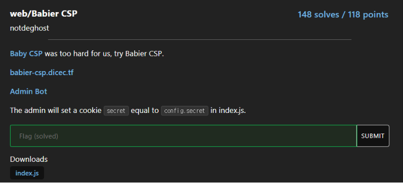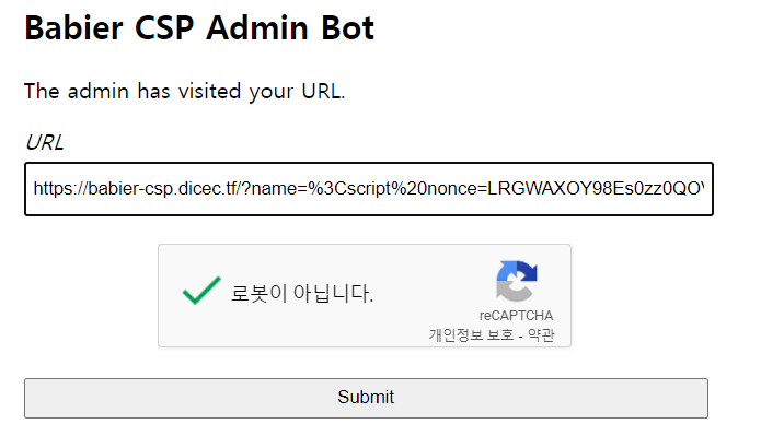 [DiceCTF] Babier CSP - 웹해킹 / 크로스사이트스립트 / CSP