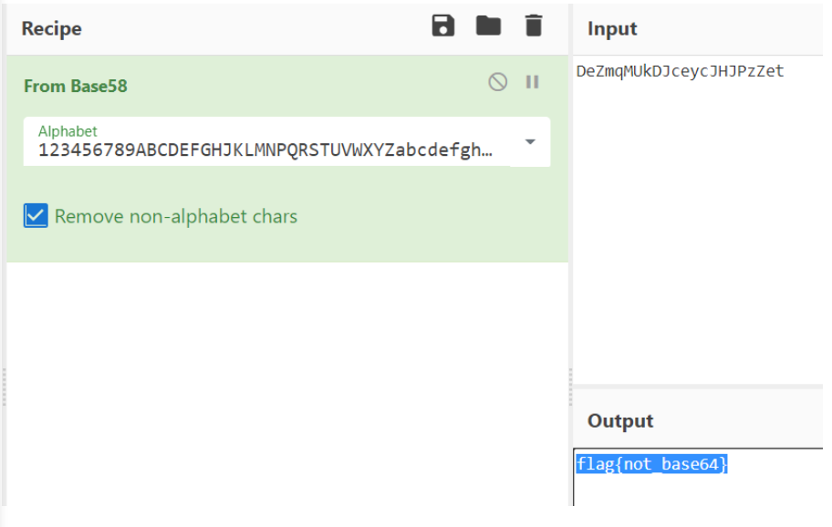 Base58 로 디코딩 했을때 플래그가 나왔다.