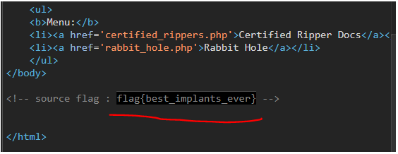 HTML 코드를 보면 주석처리된 플래그를 찾을 수 있다.