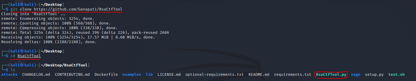 RsaCtfTool.py 라는 파이썬 파일이 보이게 된다.