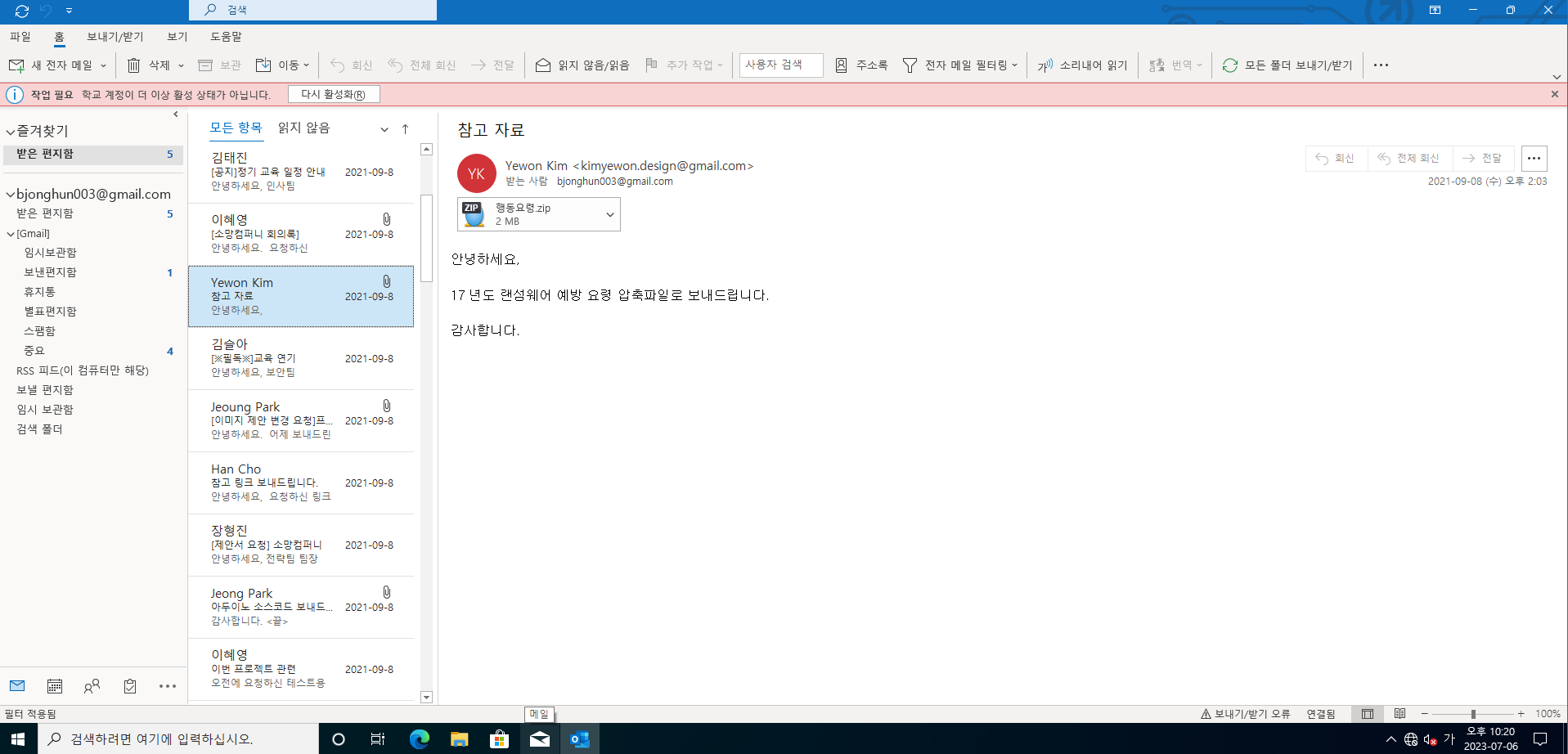 뭔가 많은 메일을 주고받은것을 확인할 수 있다.