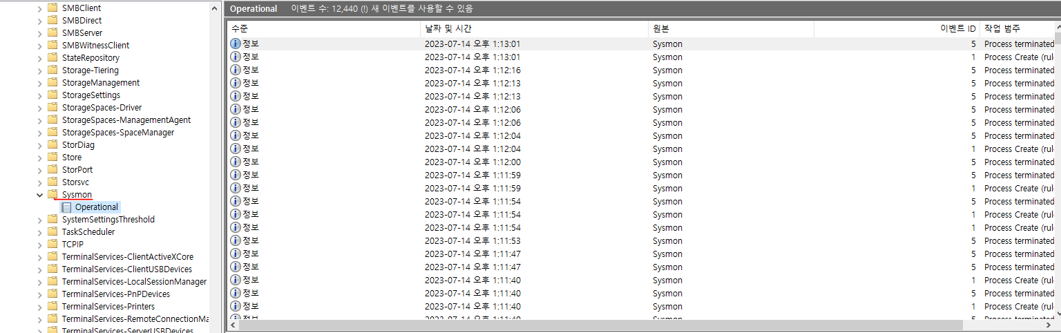 Sysmon 이라는 로그가 보인다.