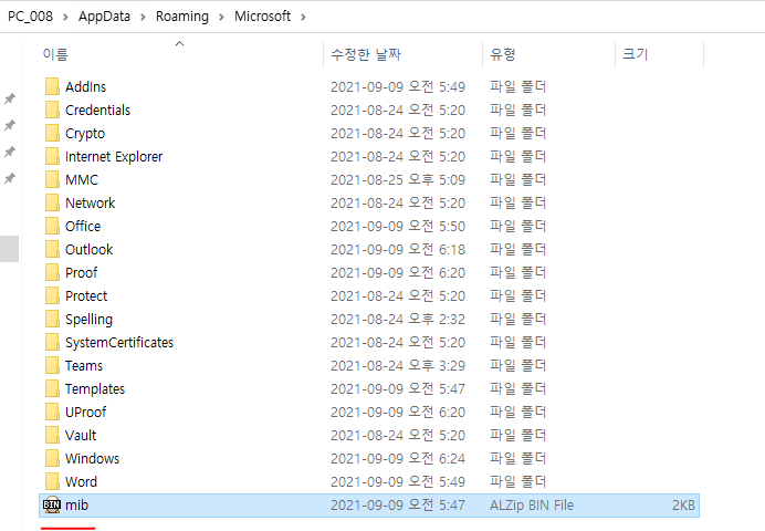 \AppData\Roaming\Microsoft 경로에 생성되는것을 볼 수 있는데